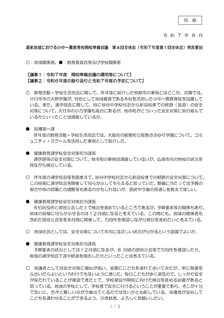 2025年7月23日 第4回全体会 発言要旨 投稿者: minochi-20050425 | 2025年11月29日 0件のコメント 11_【別紙】発言要旨_湯来地域における小中一貫教育校開校準備会議第4回全体会ダウンロード