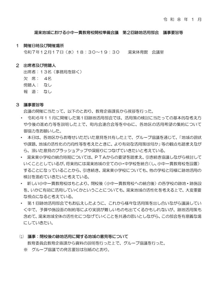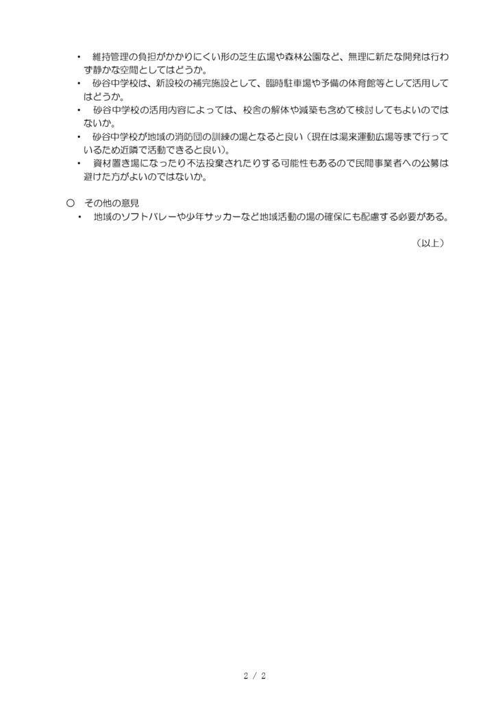 旧湯来東学区保護者から出た意見
